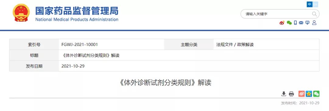 第十條規(guī)定了實(shí)施時(shí)間和原則。為與新修訂的《體外診斷試劑注冊(cè)與備案管理辦法》等配套銜接,《規(guī)則》自發(fā)布之日起正式實(shí)施?!兑?guī)則》實(shí)施之后,既往發(fā)布的文件中體外診斷試劑分類(lèi)原則與《規(guī)則》不一致的,以《規(guī)則》為準(zhǔn)。