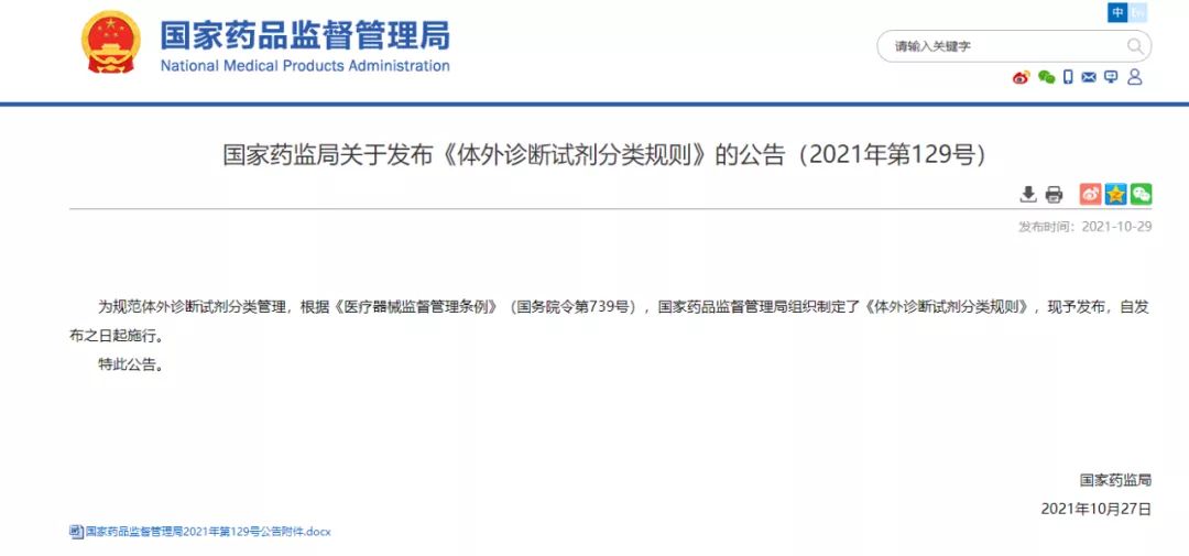 第十條 本規(guī)則自發(fā)布之日起施行。既往發(fā)布的文件中體外診斷試劑分類(lèi)原則與本規(guī)則不一致的,以本規(guī)則為準(zhǔn)。