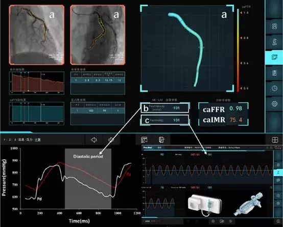 FlashAngio caFFR System(caFFR),是一個冠狀動脈血流儲備分數(shù)(FFR)評估系統(tǒng),基于冠狀動脈血管造影的影像計算冠狀動脈造影血流儲備分數(shù),在不使用壓力導(dǎo)絲的情況下,實現(xiàn)對冠脈血管狹窄病變出FFR值的評估,基于常規(guī)的造影圖像進行血管三維重建,通過專用壓力傳感器實時采集主動脈壓力,利用優(yōu)化計算機流體力學(xué)算法實時計算FFR值,可用于術(shù)前診斷、術(shù)中指導(dǎo)和術(shù)后評估。