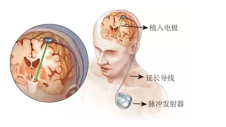 在發(fā)病初期,藥物治療是首選,后期隨著疾病進(jìn)展,藥物逐漸失去療效,就可以使用目前被廣泛認(rèn)可的首選外科療法——腦深部電刺激療法(Deep Brain Stimulation,DBS),也稱腦起搏器,它是一種有源植入醫(yī)療器械,于20世紀(jì)70年代出現(xiàn),是通過立體定向技術(shù),將電極植入腦內(nèi)特定核團(tuán),連接植入胸部的脈沖發(fā)生器,發(fā)放電脈沖對特定核團(tuán)神經(jīng)元的功能進(jìn)行調(diào)控,以改善癥狀,是目前國際上最先進(jìn)的神經(jīng)調(diào)控技術(shù),用于藥物不能有效控制運(yùn)動障礙癥狀的帕金森患者。