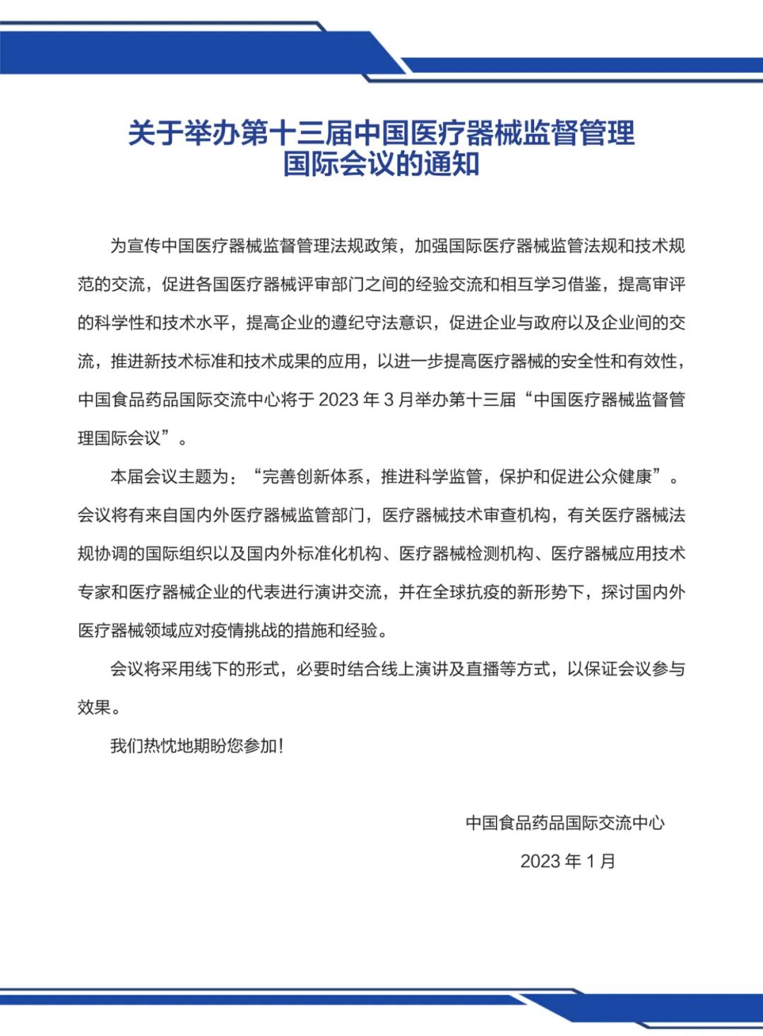 展會邀約 | 第十三屆中國醫(yī)療器械監(jiān)督管理國際會議(CIMDR)