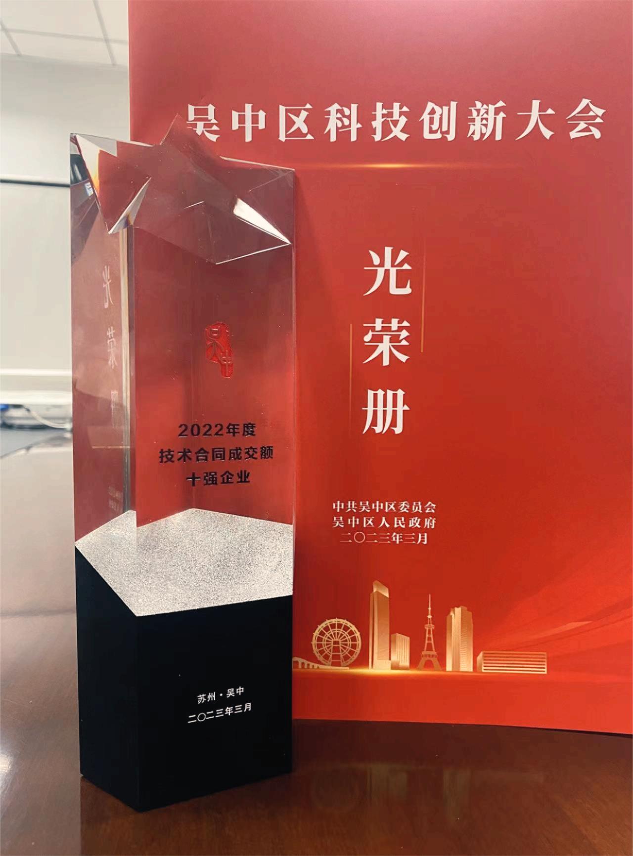 奧泰康「蘇州CDMO中心」入圍吳中區(qū)技術(shù)合同成交額十強(qiáng)?????????3月28日,江蘇吳中召開(kāi)全區(qū)科技創(chuàng)新大會(huì),奧泰康蘇州CDMO中心——蘇州蘇豪生物材料科技有限公司受邀出席會(huì)議,并獲得吳中區(qū)2022年度技術(shù)合同成交額十強(qiáng)企業(yè)榮譽(yù)。