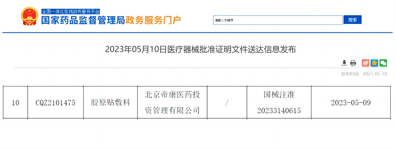MA成果發(fā)布_2023年5月9日,奧泰康北京CDMO中心取得「首張」國家藥監(jiān)局批準(zhǔn)的三類醫(yī)療器械注冊證2023年5月9日,奧泰康北京CDMO中心取得「首張」國家藥監(jiān)局批準(zhǔn)的三類醫(yī)療器械注冊證(國械注準(zhǔn)20233140615),系全國首個(gè)以細(xì)胞外基質(zhì)來源的膠原蛋白為原料制備的三類膠原貼敷料。此項(xiàng)目是北京CDMO中心基于“十三五”國家重點(diǎn)研發(fā)計(jì)劃項(xiàng)目,在MAH制度下,與湖北恒安芙林藥業(yè)股份有限公司戰(zhàn)略合作完成涵蓋市場準(zhǔn)入全流程業(yè)務(wù)的醫(yī)美類項(xiàng)目,也是器械CRO/CDMO行業(yè)受托研發(fā)誕生的全國首個(gè)三類醫(yī)療器械注冊證,具有里程碑意義。