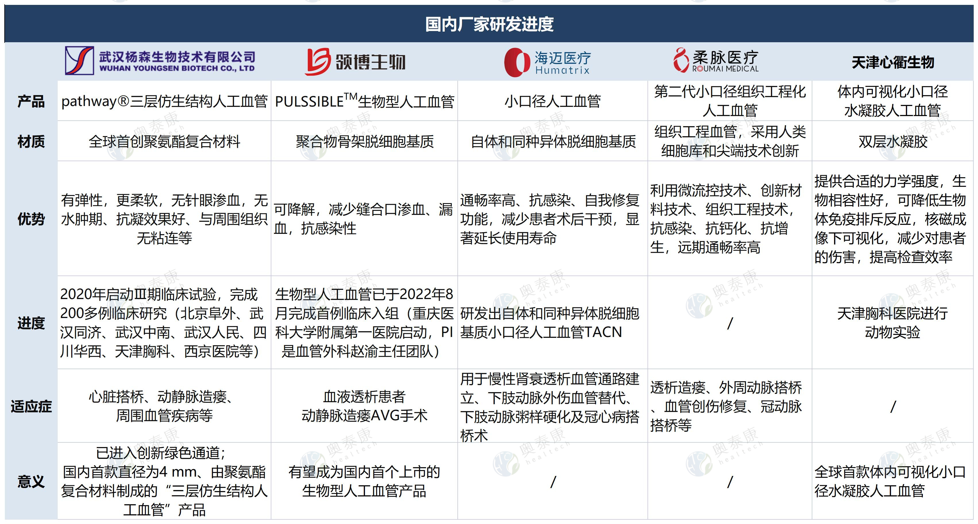 國內很多的組織工程小口徑血管產(chǎn)品也正在研發(fā)——武漢楊森的由聚氨酯復合材料制成的“三層仿生結構人工血管”產(chǎn)品、領博生物公司的生物型脫細胞人造血管(SAV)、海邁醫(yī)療的自體和同種異體脫細胞基小口徑人工血管、柔脈醫(yī)療的小口徑組織工程化人工血管與組織化電子血管等,國內企業(yè)的發(fā)力讓我們看到了希望。