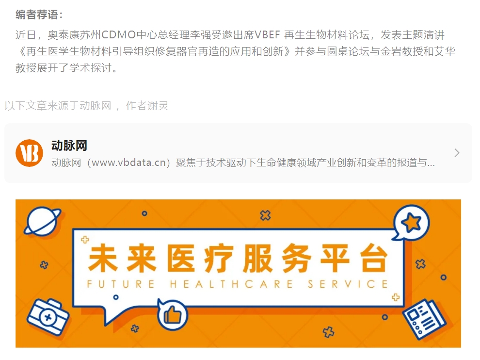 2024年5月7日至10日,第八屆未來醫(yī)療生態(tài)展會(huì)以“新青年”為主題,由VB100、動(dòng)脈網(wǎng)、蛋殼研究院、動(dòng)脈橙主辦,天津經(jīng)濟(jì)技術(shù)開發(fā)區(qū)(TEDA)聯(lián)合主辦,與天津?yàn)I海中關(guān)村科技園管委會(huì)、北塘灣數(shù)字經(jīng)濟(jì)產(chǎn)業(yè)園戰(zhàn)略合作,于北京·北人亦創(chuàng)國(guó)際會(huì)展中心正式召開。作為此次論壇備受關(guān)注的熱門論壇之一,生物再生材料論壇于5月10日下午圓滿落幕。
