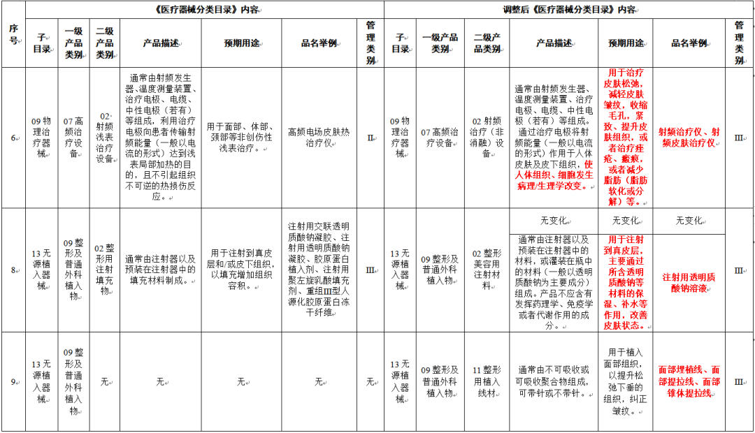 醫(yī)美注射類產(chǎn)品是國家近年來重點監(jiān)管領(lǐng)域,隨著水光針產(chǎn)品的火熱和市場的良莠不齊,產(chǎn)品濫用、超適應(yīng)癥范圍使用情況增多,國家藥監(jiān)局標(biāo)管中心出臺政策規(guī)范了對于水光針產(chǎn)品的監(jiān)管標(biāo)準(zhǔn)。2022年3月30日,國家藥監(jiān)局發(fā)布實施《關(guān)于調(diào)整<醫(yī)療器械分類目錄>部分內(nèi)容的公告(2022年第30號)》,對部分醫(yī)美產(chǎn)品監(jiān)管類別作出調(diào)整,其中明確注射用透明質(zhì)酸鈉溶液按照III類器械進(jìn)行監(jiān)管。政策的落地,促使生產(chǎn)廠家積極申報III類醫(yī)療器械注冊證,具有III類醫(yī)療器械注冊證的水光產(chǎn)品有望加速上市。
