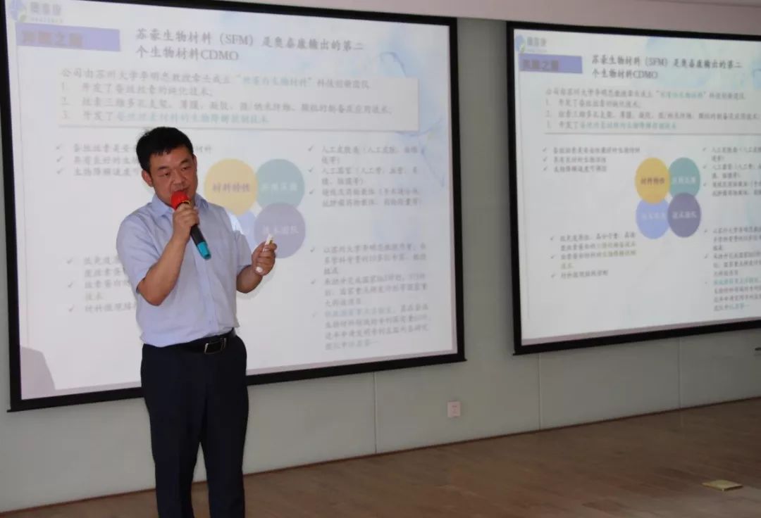 培訓(xùn)會在下午1:30準(zhǔn)時(shí)開始,集團(tuán)CEO饒總對公司整體發(fā)展做詳細(xì)講解,饒總分別從“企業(yè)發(fā)展歷程”、“管理團(tuán)隊(duì)介紹”、“我們的未來發(fā)展”三大方面進(jìn)行介紹,培訓(xùn)中,饒總憶苦思甜,深情講述奧泰康發(fā)展初期的鳳凰涅槃,在場員工無一不為之動容,為公司初期艱苦奮斗,堅(jiān)守信念的精神所感動;之后奧泰康進(jìn)入快速發(fā)展階段,先后獲得多項(xiàng)創(chuàng)新醫(yī)療器械批件,并參與多項(xiàng)國家重點(diǎn)研究項(xiàng)目,并與多家國內(nèi)外知名企業(yè)合作,擁有醫(yī)療器械CDMO行業(yè)唯一的已投產(chǎn)GMP車間等等,從最初單項(xiàng)的CRO項(xiàng)目服務(wù)延伸到CRO/CDMO一體化服務(wù),致力于成為醫(yī)藥行業(yè)MA解決方案的領(lǐng)導(dǎo)者;