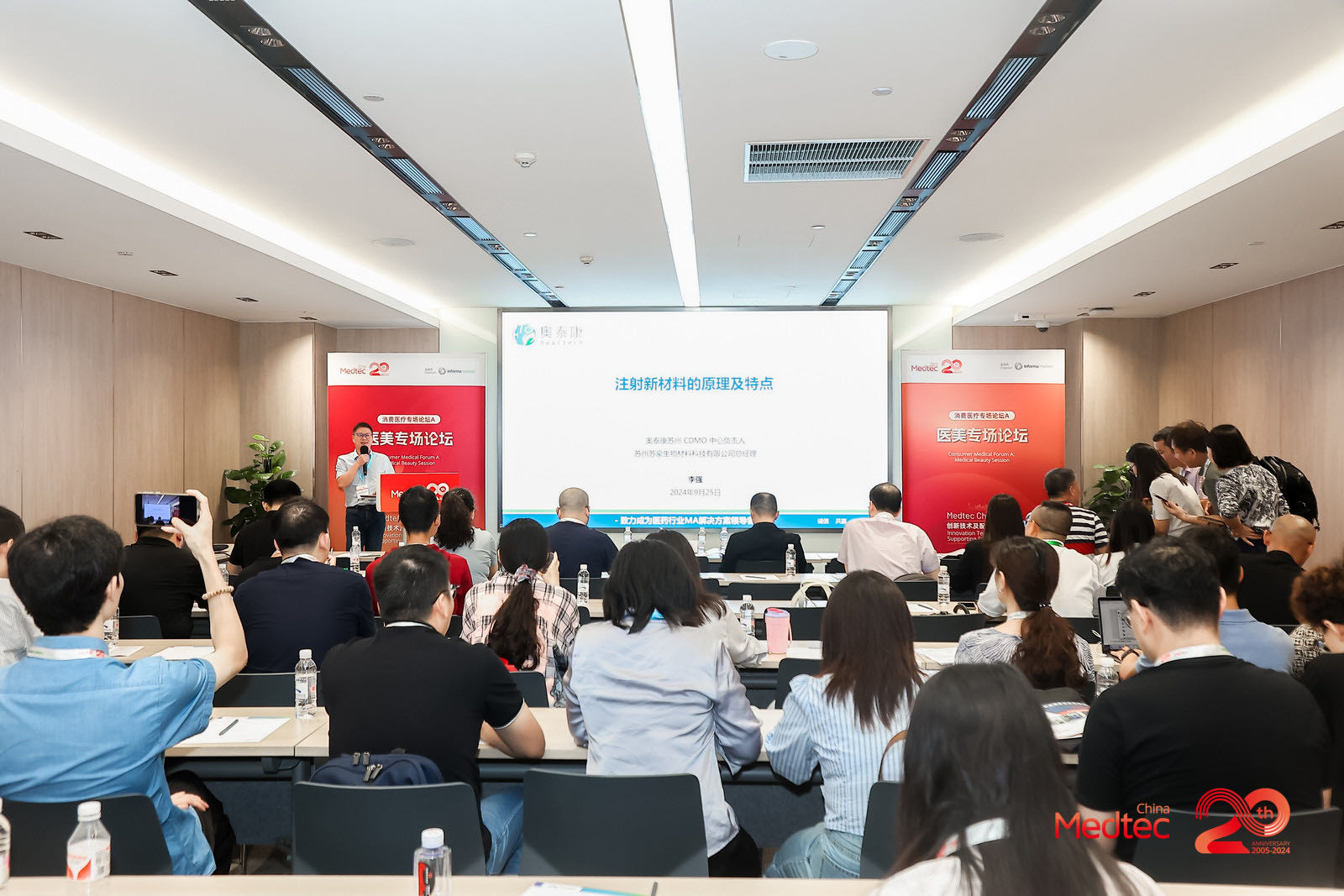 9月27日,上海世博展覽館,Medtec China 2024暨第十八屆國際醫(yī)療器械設(shè)計與制造技術(shù)展覽會落下帷幕,這一盛會匯集了來自全球各地的頂尖企業(yè)、科研機構(gòu)及行業(yè)專家。奧泰康作為參展商受邀參加會議,在醫(yī)美專場論壇中,奧泰康蘇州CDMO中心負責人、蘇州蘇豪生物材料科技有限公司總經(jīng)理李強以注射新材料的原理及特點》為主題進行分享,與行業(yè)伙伴共同探索醫(yī)療器械領(lǐng)域的最新趨勢與未來發(fā)展方向。